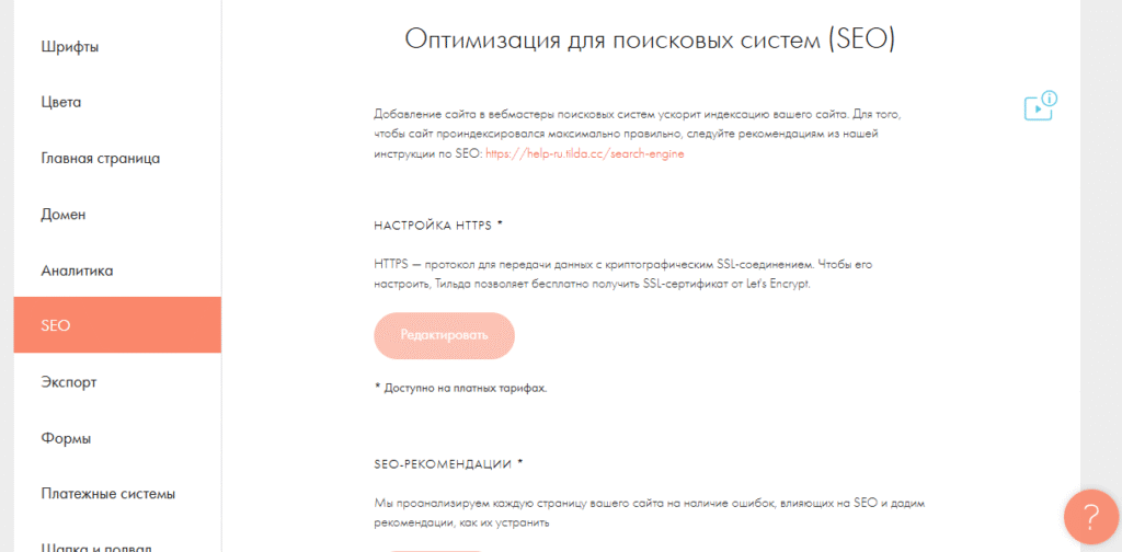 Тильда предоставляет блоки, улучшающие SEO без программирования.