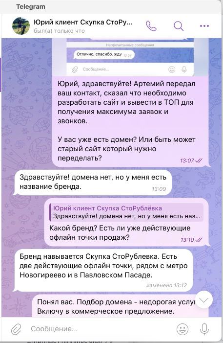 К нам обратился руководитель компании «Скупка СтоРублевка» с запросом на создание сайта с нуля и последующим его продвижением в Яндексе и Гугле. Проанализировав нишу бизнеса, стало понятно что уровень конкуренции довольно высокий, но приемлемый для достижения топовых позиций и высокого уровня трафика. В течении трех часов были составлены план работы и коммерческое предложение на которое сразу согласился клиент. После подписания договора и внесения аванса мы приступили к выполнению проекта.